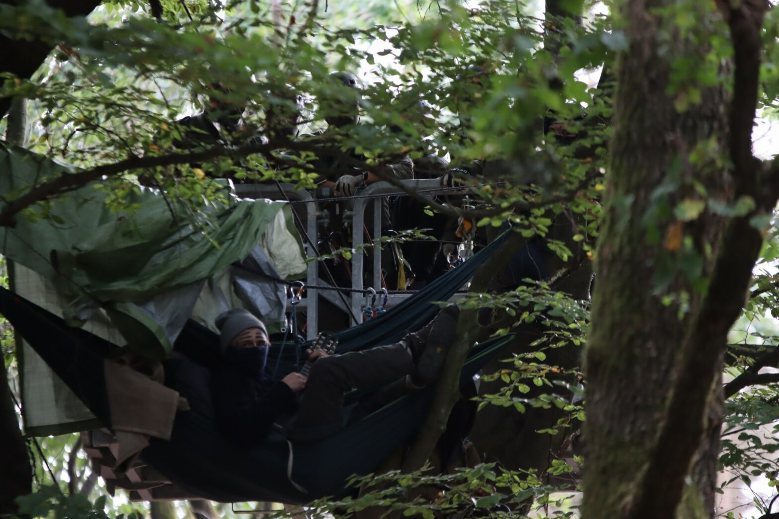 Direkt zum Start der Rodungssaison wurde der erste Baum gefällt und in Folge dessen Tag X ausgerufen. Der Herren(los)wald wurde von der Polizei geräumt und zu Teilen gerodet. Zwei Menschen blockierten erfolgreich einen Bagger. Parallel dazu wurde eine Autobahnbrücke der A5 in Solidarität mit dem Widerstand gegen die A49 blockiert. Deshalb musste die Autobahn für mehrere Stunden gesperrt werden! Etappensieg für uns.